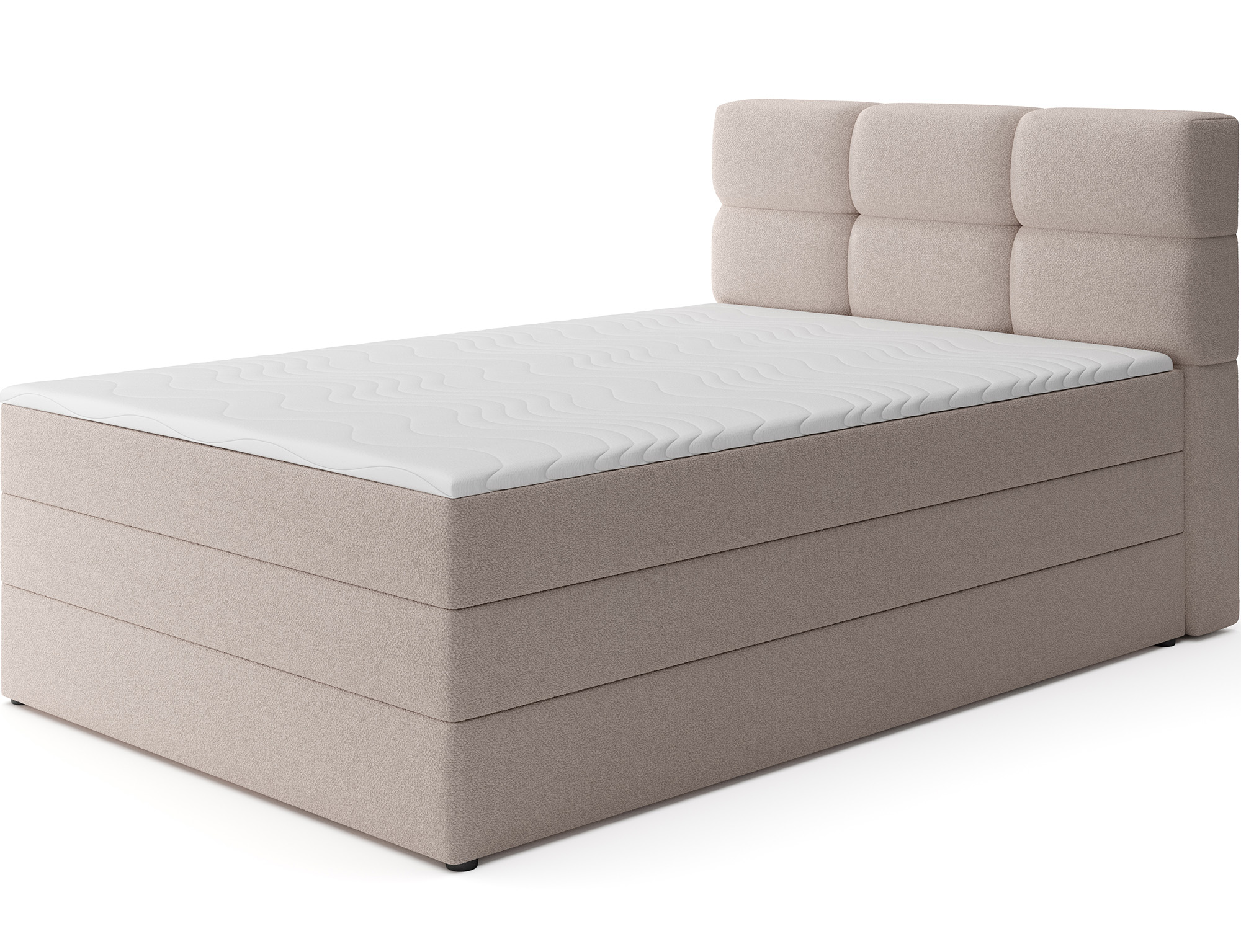 La cama continental Kasped es una opción moderna y funcional para cualquier dormitorio. Disponible en dos tamaños: 215 x 121 x 108 cm y 215 x 141 x 108 cm, permite personalizarla según las necesidades individuales y el tamaño de la habitación. Su construcción se basa en una robusta estructura de madera maciza y aglomerado, lo que garantiza estabilidad y durabilidad durante años. El elemento central de confort es el colchón de muelles Bonnell, integrado en la estructura. Gracias a estos muelles, proporciona un soporte eficaz al cuerpo, proporcionando un descanso ergonómico y una buena circulación del aire. Además, la cama está equipada con dos capas de espuma de alta calidad (T2130 y T2540) que, en conjunto con los muelles, mejoran la elasticidad y el confort, adaptándose a la forma del cuerpo y garantizando un descanso reparador.