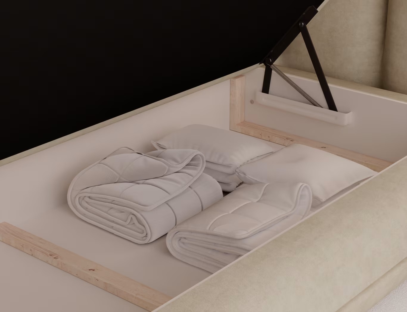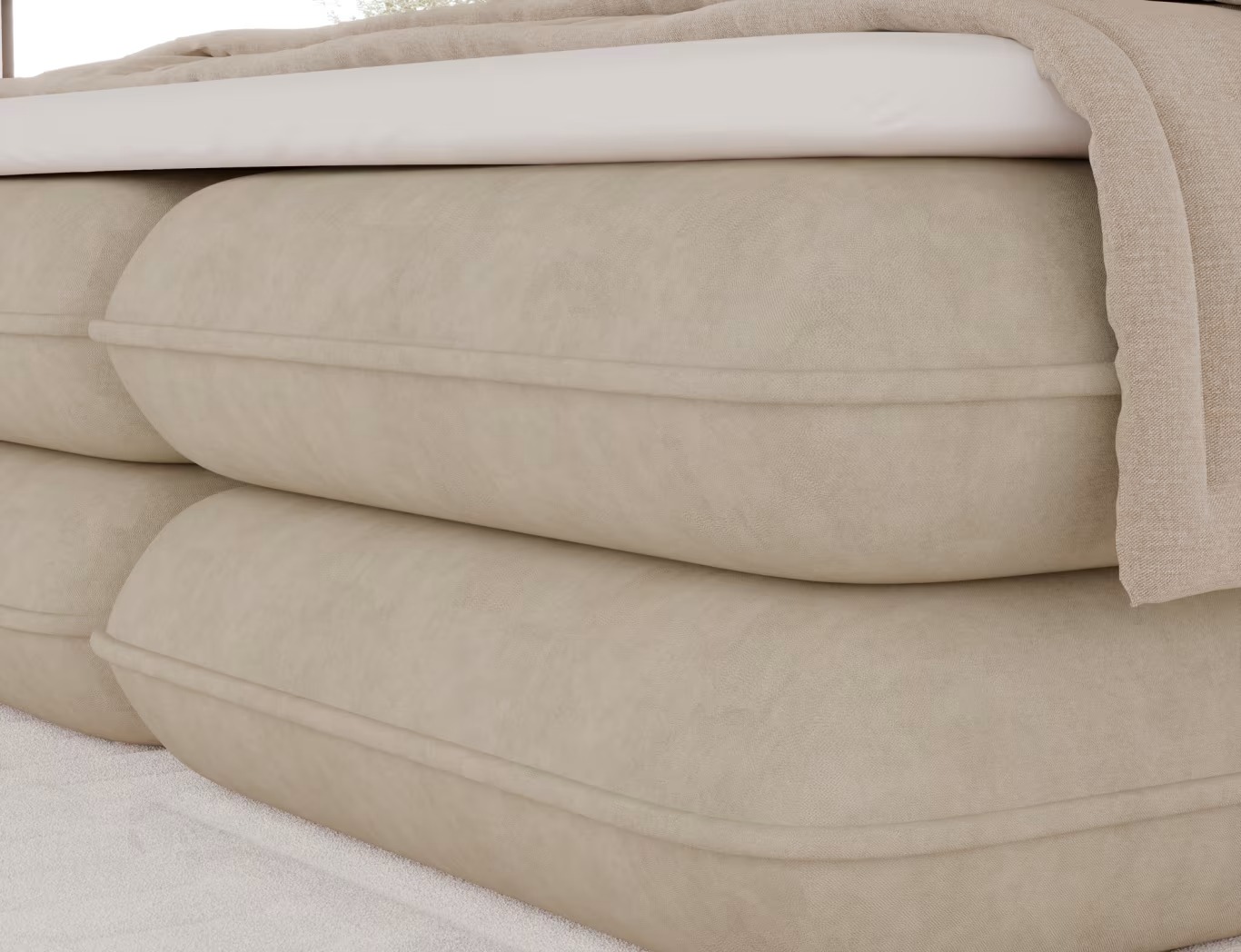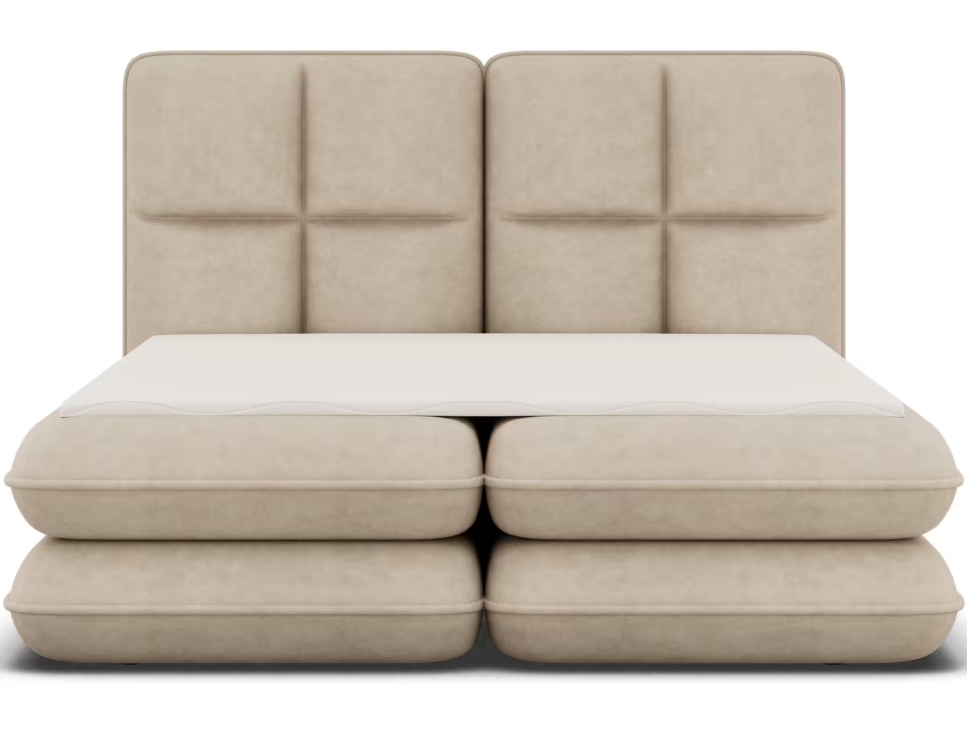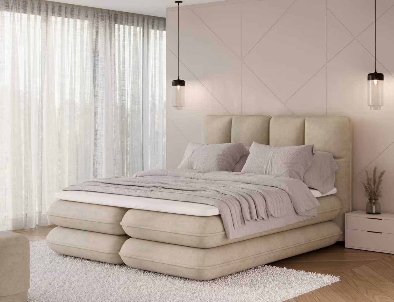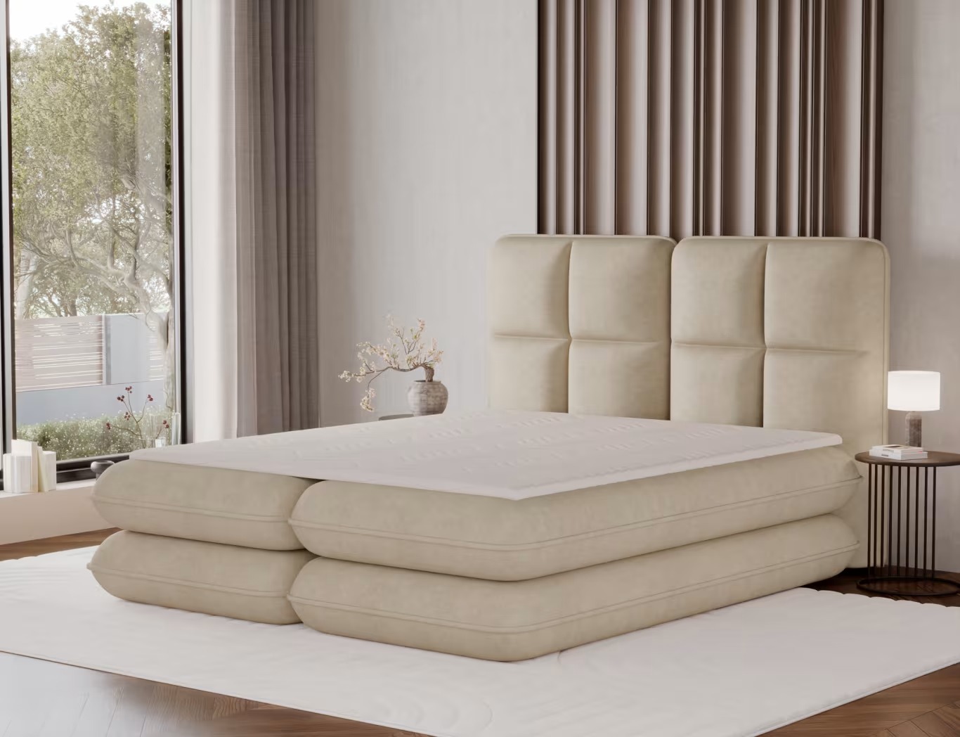 CAMA TAPIZADA CON COLCHÓN ARCÓN Y TOPPER TONILA BEIGE