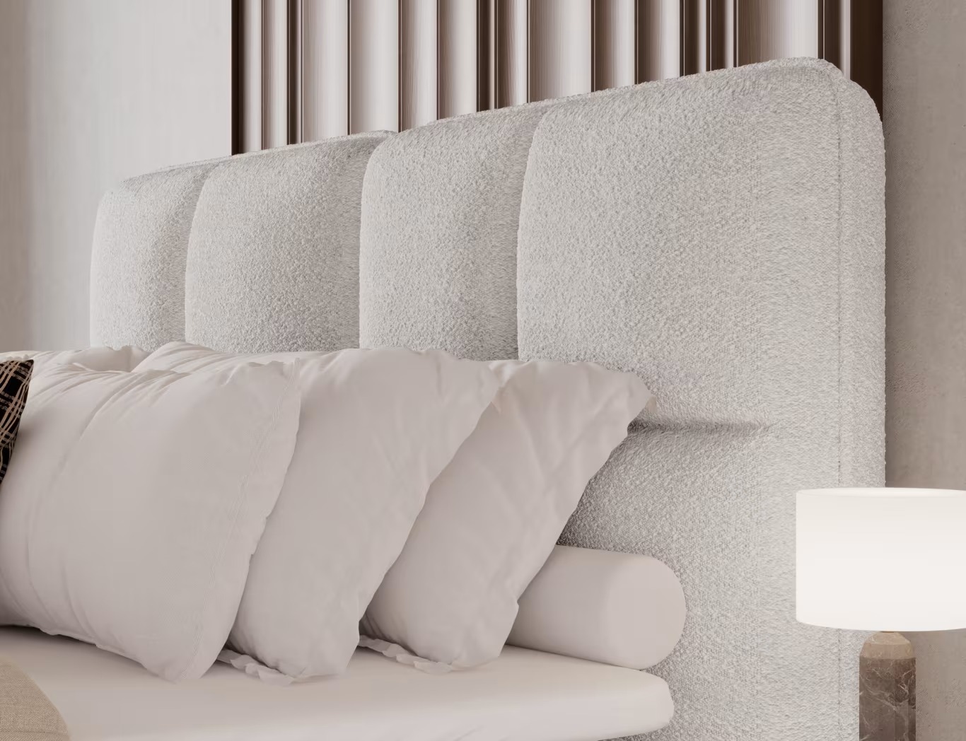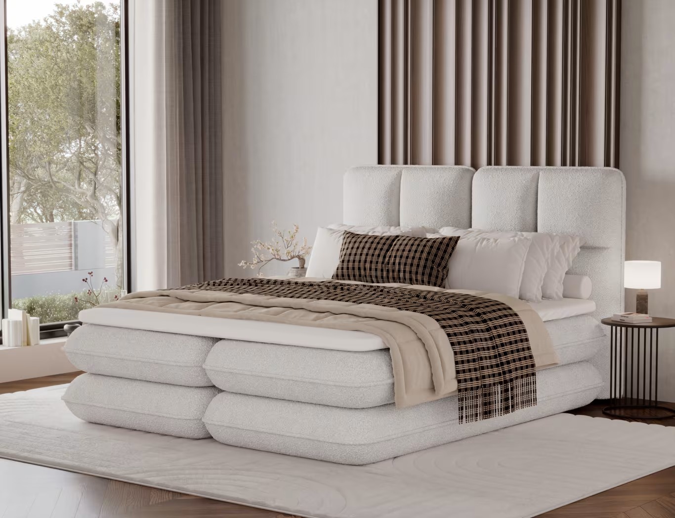CAMA TAPIZADA CON COLCHÓN ARCÓN Y TOPPER TONILA BLANCO