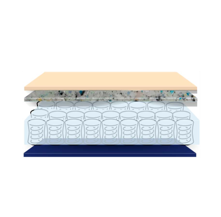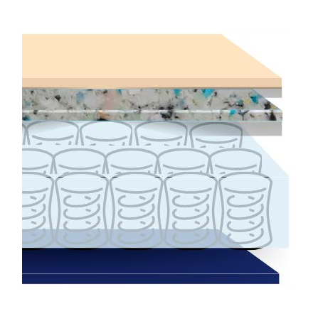 Esto lo logra gracias a su núcleo muelle ensacado de 680 muelles recubiertos por tejido TST de alto gramaje. Además de un ensamblado con tejido TST, tanto superior como inferior, que se complementa con una plancha de 2 cm de grosor ECONATUR de alta densidad.