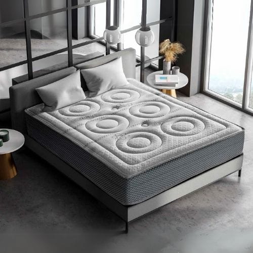 Núcleo | 680 muelles ensacado recubiertos tejido TST + BOX HR 33 kg/m3 ensamblado con tejido TST superior e inferior+ plancha 2 cm HR alta densidad