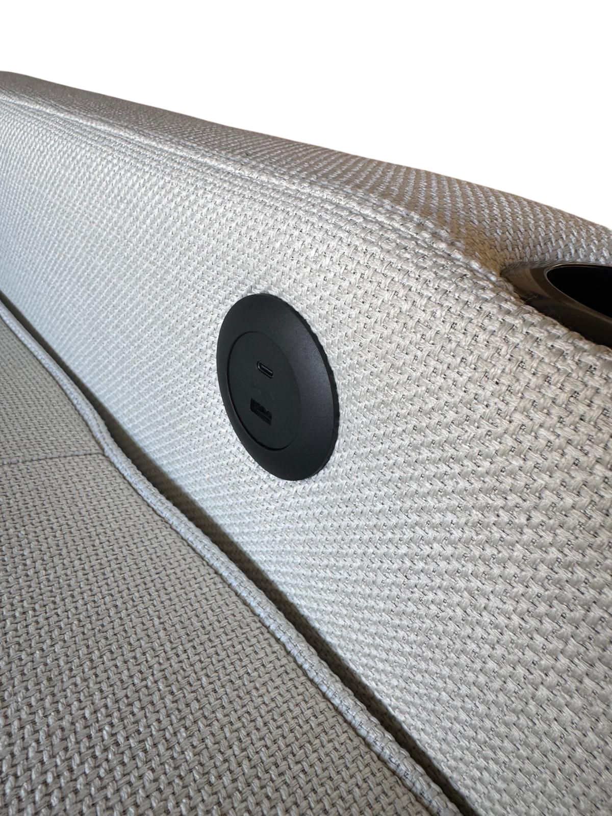 Botonera lateral en el interiore del brazo, integrada con USB en la que podrás cargar el móvil, poner una lámpara de lectura y mucho más