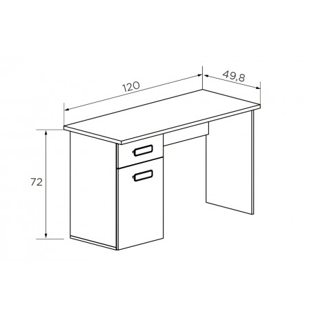 Una mesa de estudio de 72 cm de alto le hacen compañía a los otros muebles. Con unos cómodos 72 cm de alto, tendrás una gaveta y un amplio cajón del lado izquierdo, mientras que tus piernas quedan guardadas bajo el tablón principal. Es todo un “must” para una habitación.
