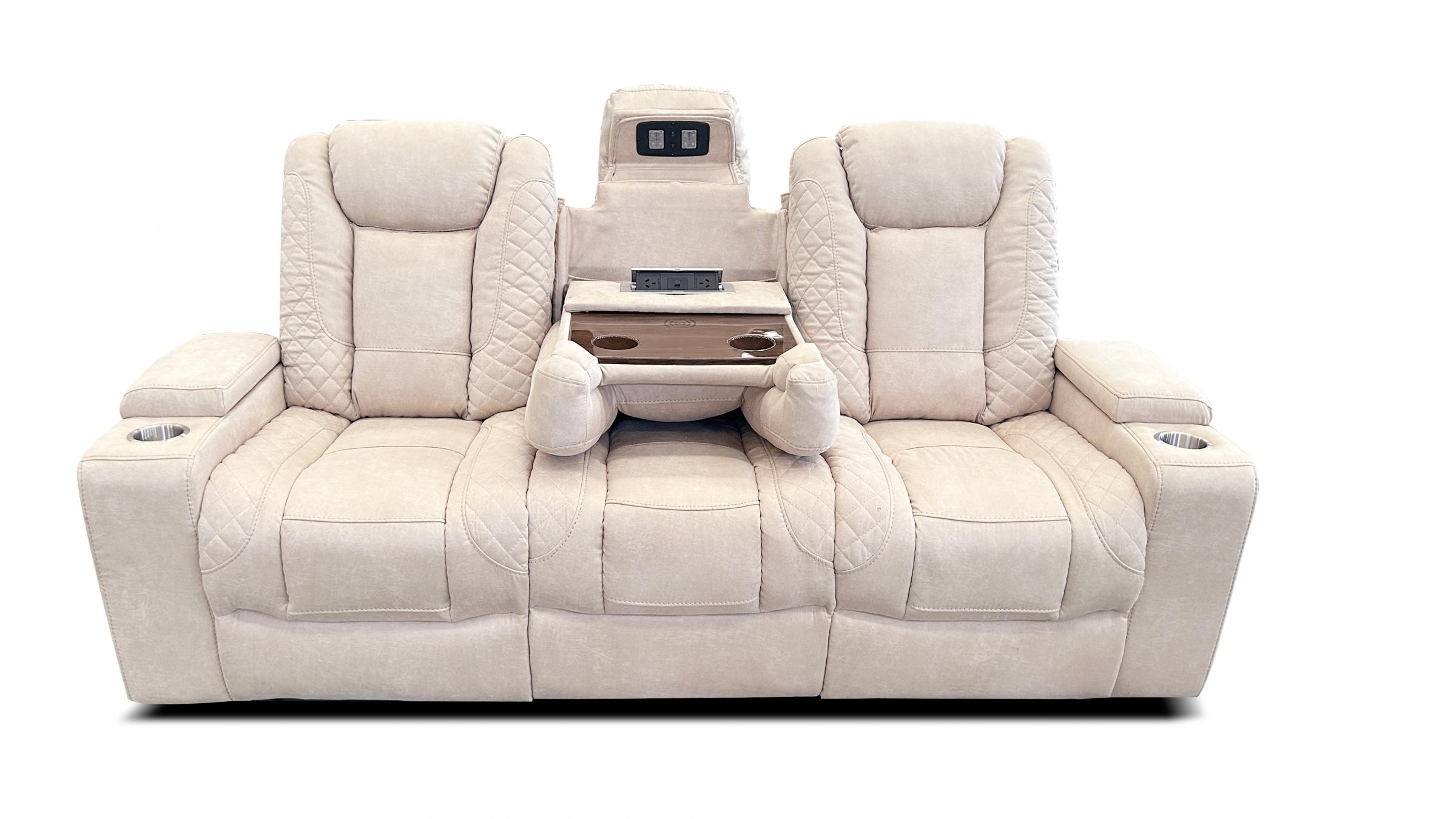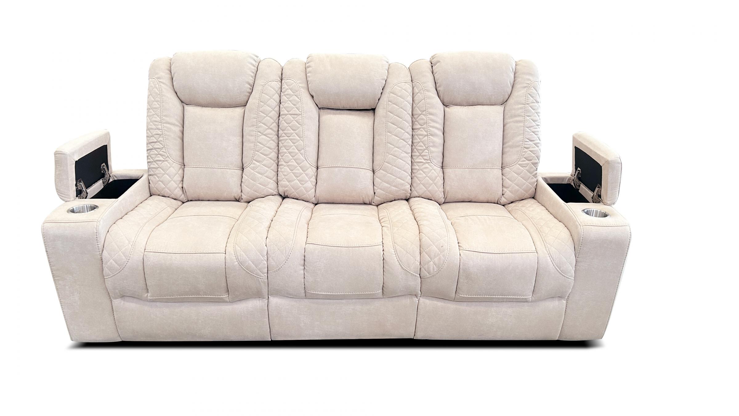 Juego de sillones de relax ELECRICOS reclinables de gama alta, con tapiceria de alta calidad de microfibra. Con muchas extras como altavoces con subwoofer, portavasos, cargador inalambico, luces LED, puerto usb.