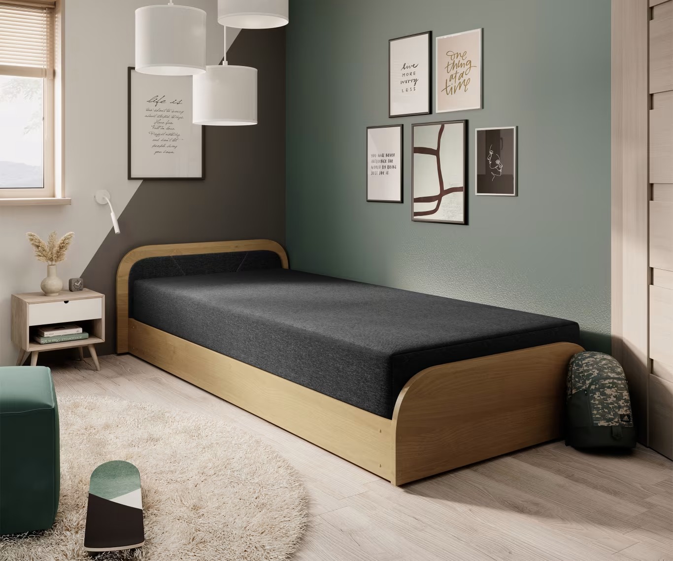 camas juveniles, arcón de almasenaje, colchón, cama canapé, diseño nórdico, pack ahorro, cama compacta, almacenaje extra |