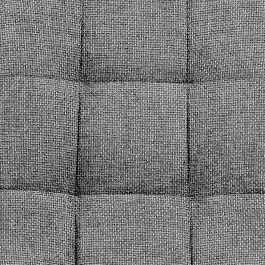 Silla con estructura de madera tapizada en tela gris claro, con asiento acolchado y patas metálicas en acabado negro. Disponible también en colores gris claro y beige. Se sirve en cajas de 4 uds.