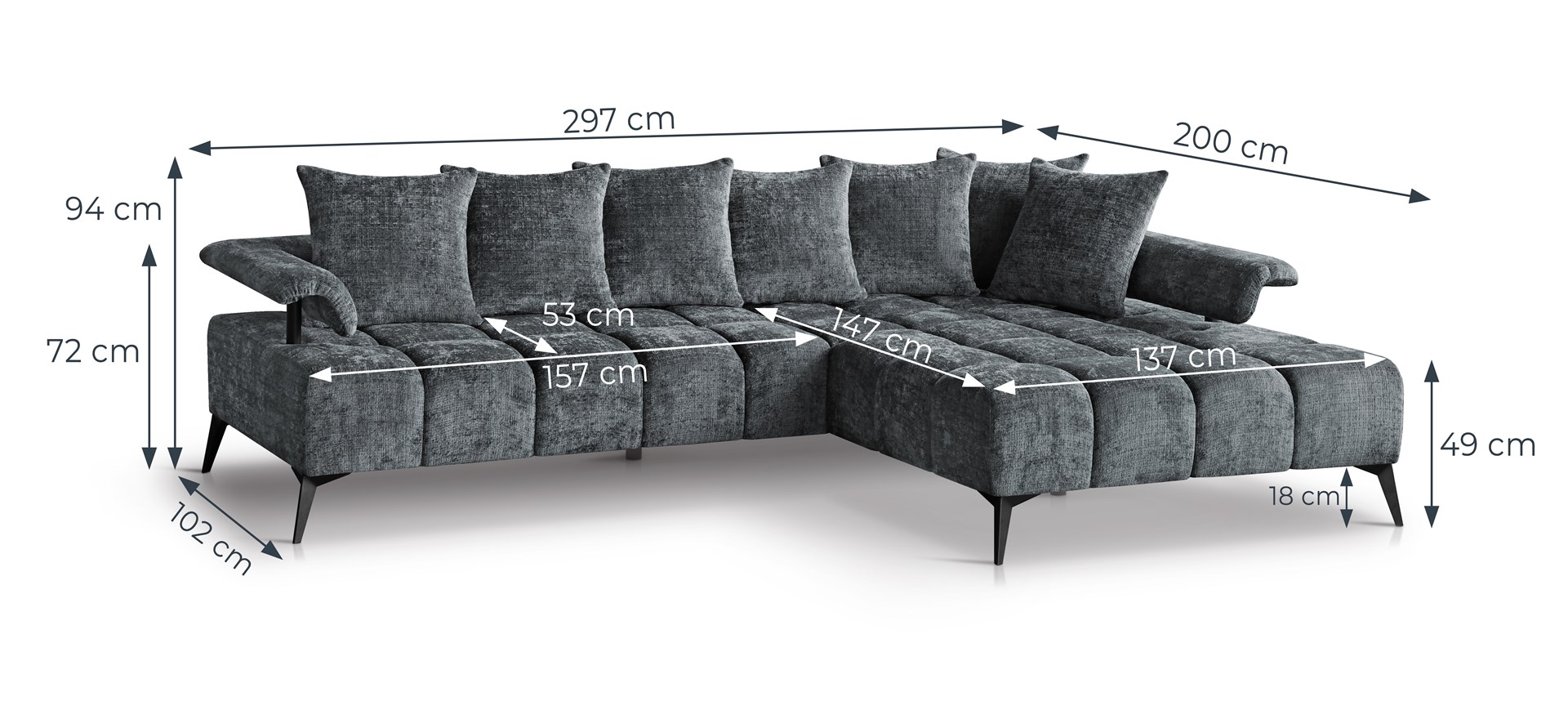 Sofá 297 x 200 x 94 cm - VANESSA NEW L