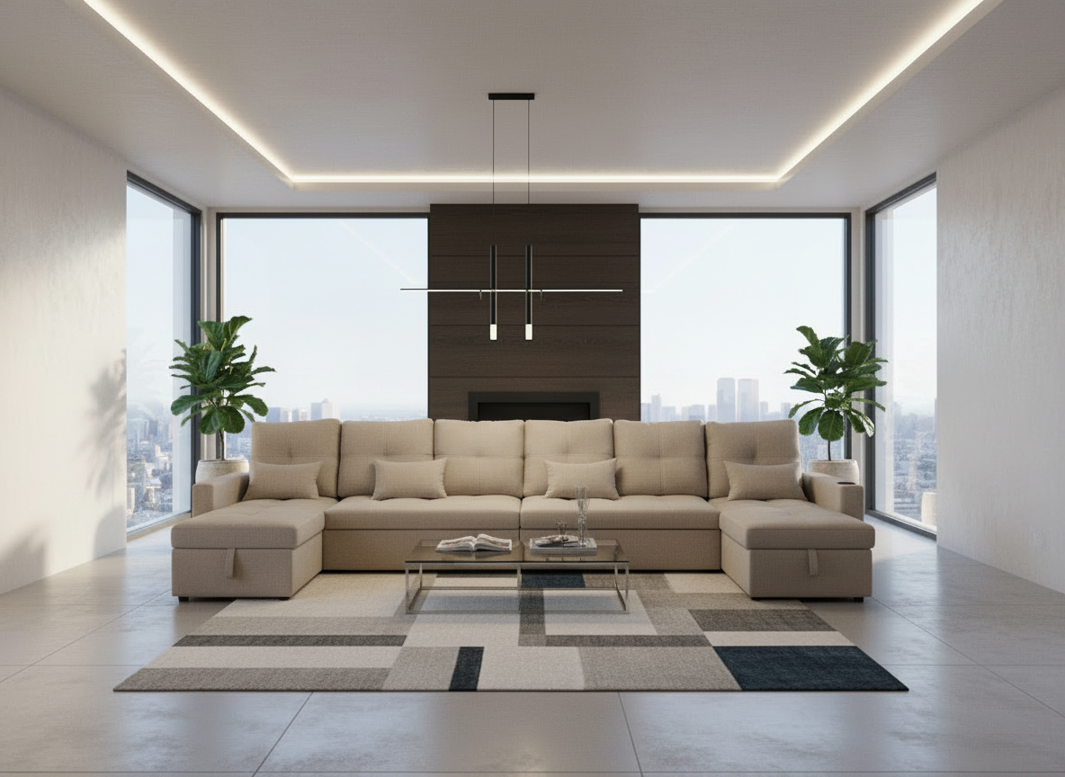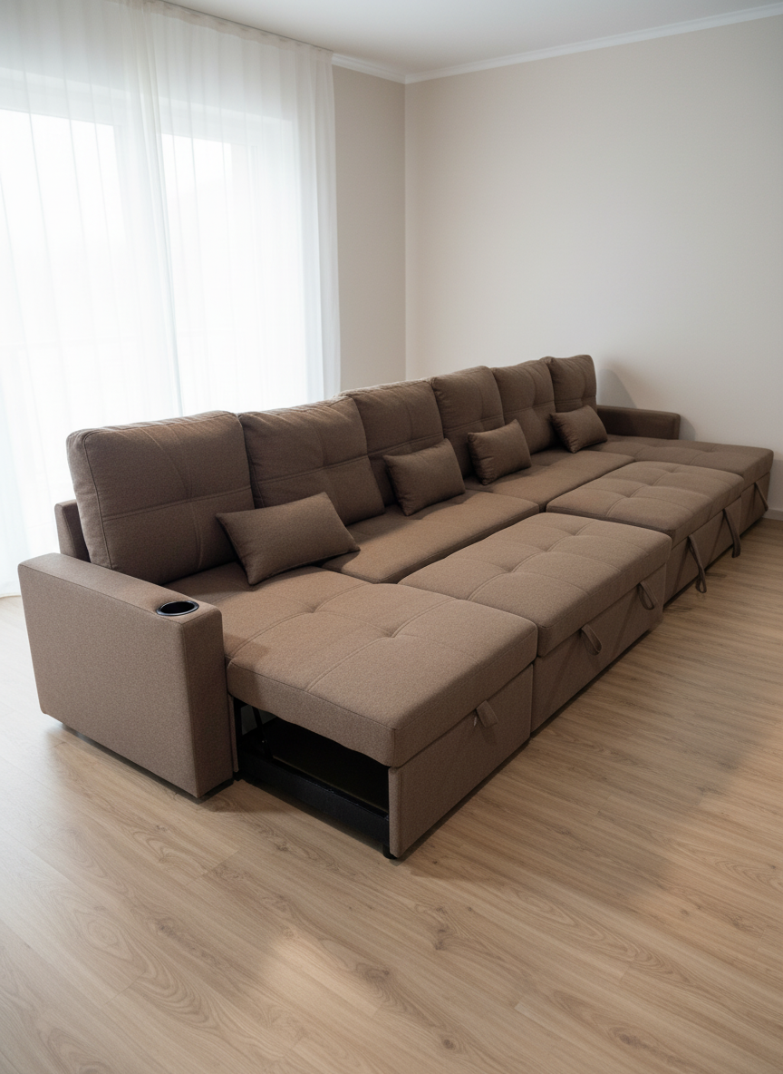 Sofá 2camas + 2 arcones+USB+TYPE-C+portavasos-406cm x 130cm - COSTA U XXL