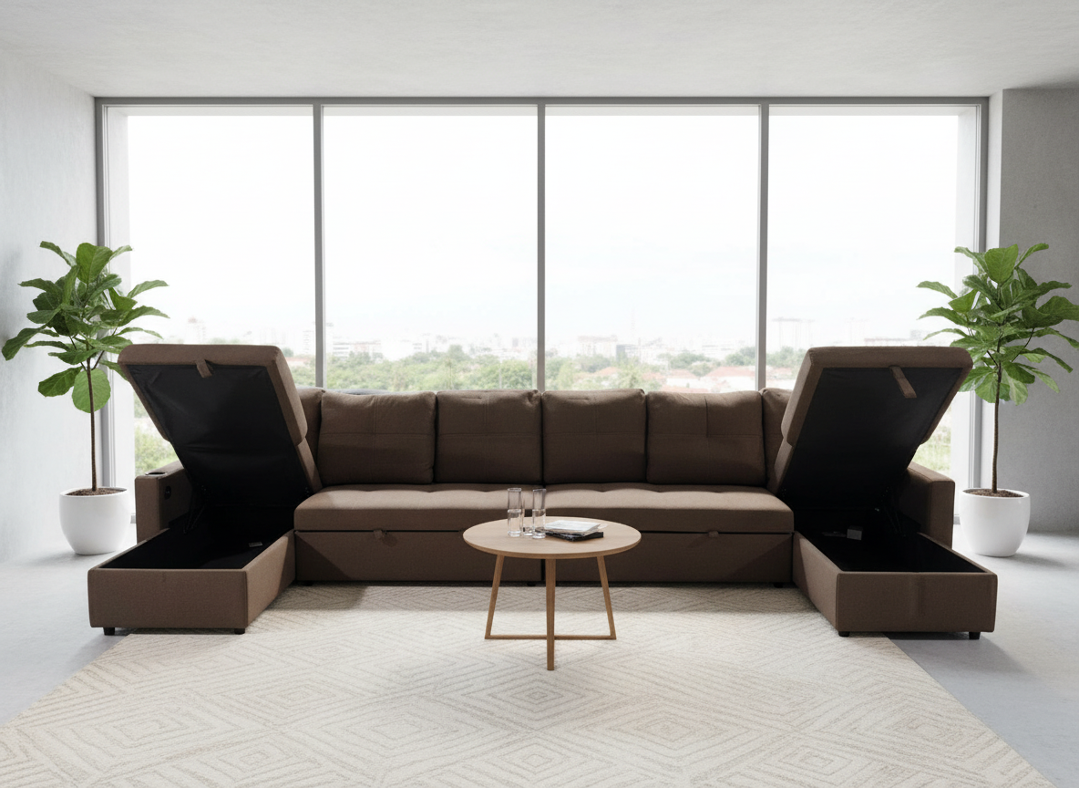 Sofá con 2camas + 2 arcones+USB+tipeC+portavasos - Costa U 406 CM x 130cm
