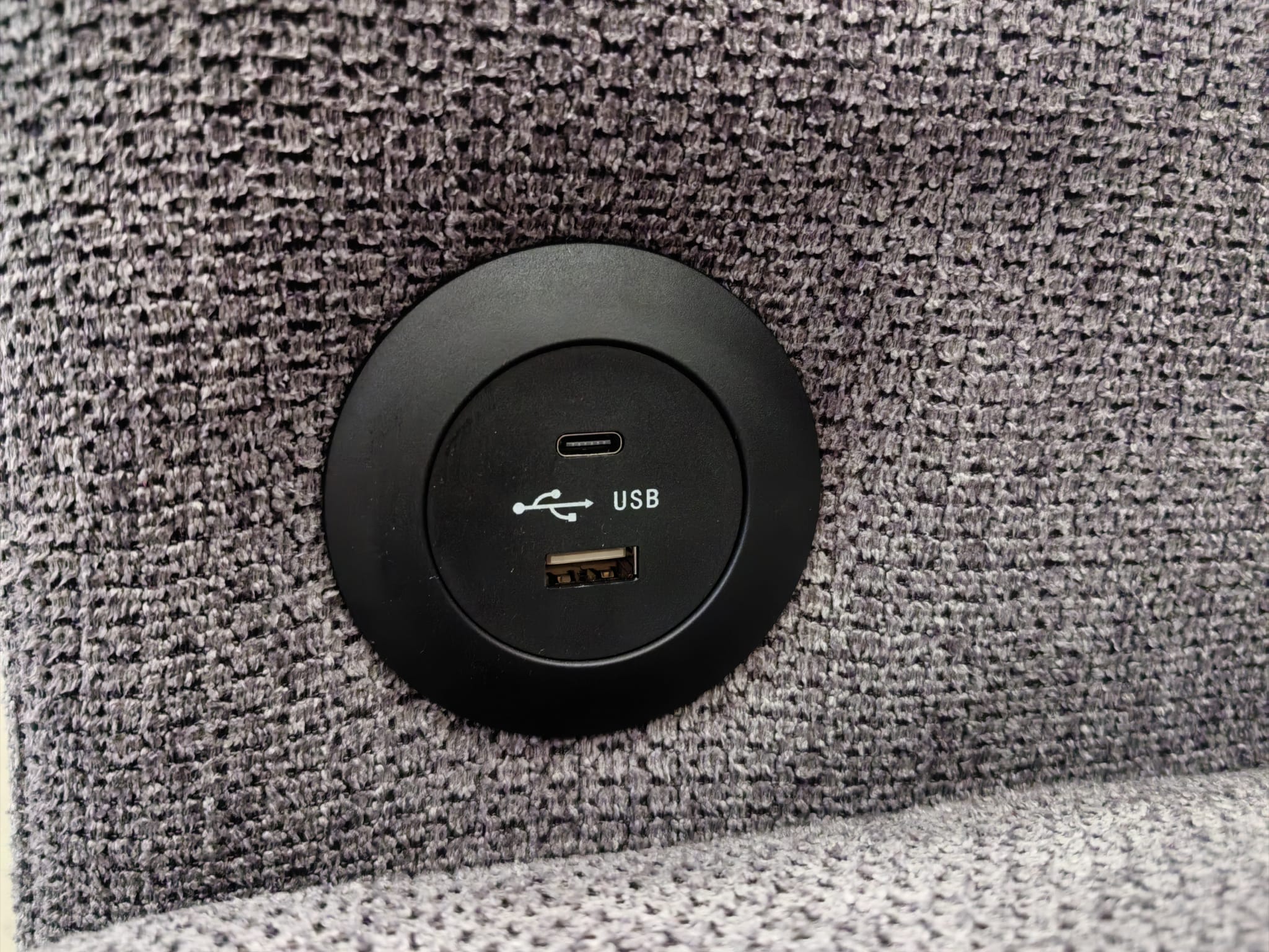 Botonera lateral en el interiore del brazo, integrada con USB en la que podrás cargar el móvil, poner una lámpara de lectura y mucho más