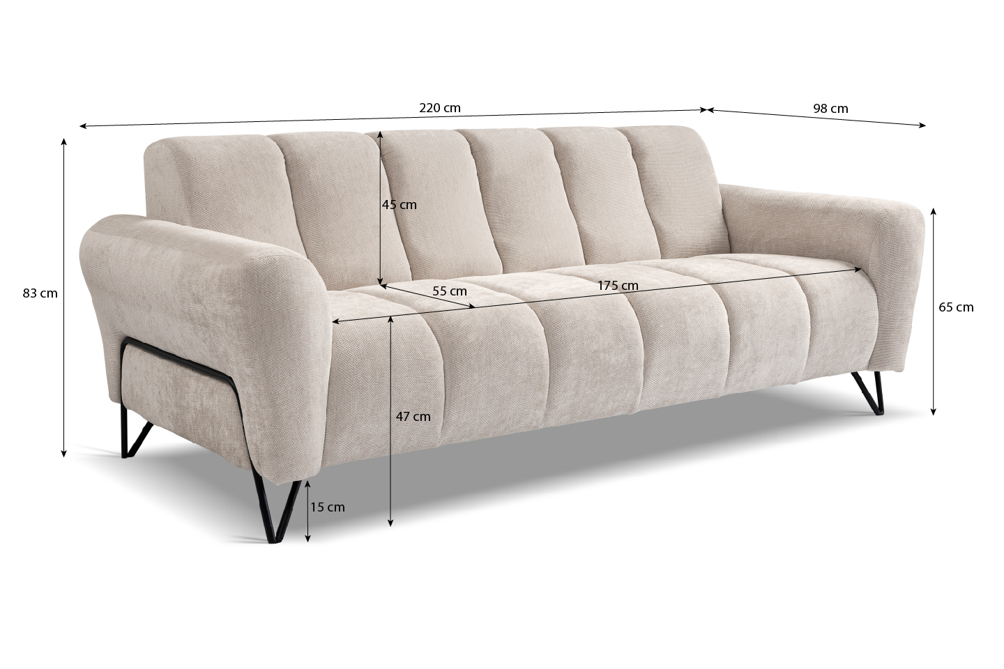 El conjunto Volare se distingue por su cuidada elaboración y el uso de materiales de la más alta calidad, lo que garantiza satisfacción con su uso durante años. Los asientos están construidos a base de un sistema de muelles ondulados recubiertos de espuma de tapicería de alta elasticidad, lo que proporciona un confort excepcional. Esta es una solución mucho mejor que los tableros de muebles estándar, que no son adecuados para dormir todos los días.