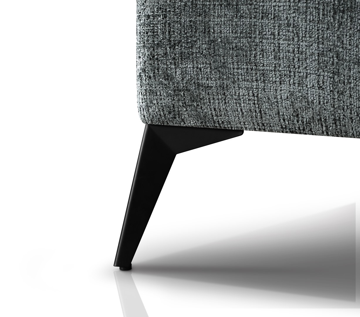 Sofá esquinero VANESSA: muelles sinuosos, asiento cómodo, cordones decorativos, patas de metal negro, detalles decorativos en el respaldo, diseño moderno.