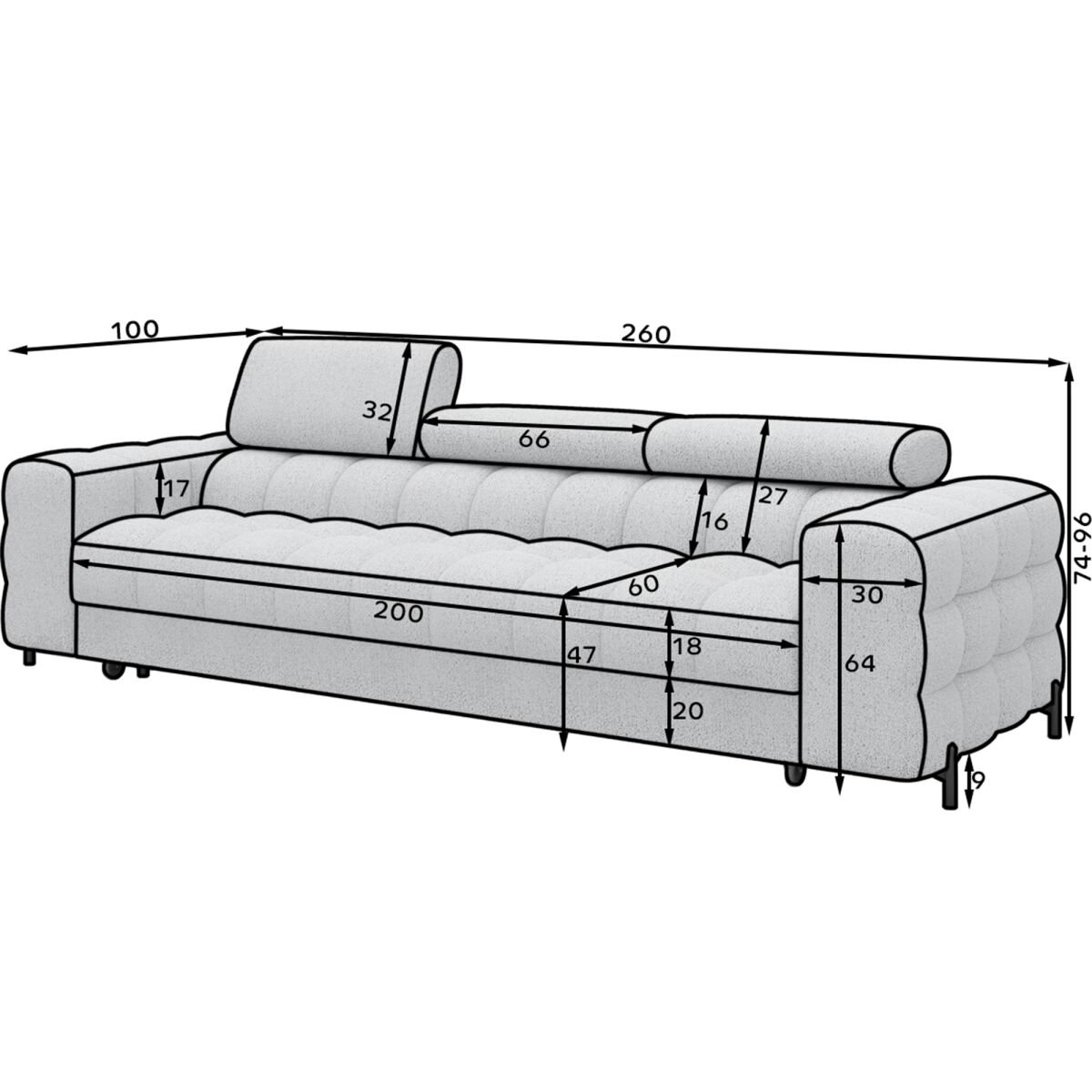 ¿Eres una mamá ocupada que sueña con un momento de relajación después de un largo día? ¡El sofá cama Festello es una solución diseñada para quienes buscan combinar comodidad, estilo y practicidad en un solo mueble! Este moderno sofá cama para el salón cautiva con sus costuras geométricas, su elegante forma y su respaldo tapizado, convirtiéndolo en un complemento perfecto para cualquier decoración. Ya sea en gris clásico, verde botella vibrante u otro tono de la amplia gama de telas disponibles, este cómodo sofá con reposacabezas ajustables facilita enormemente la relajación diaria. Te permite adaptarlo a tus necesidades, ya sea viendo dibujos animados con tus hijos o leyendo un libro. Con solo unos sencillos movimientos, los reposacabezas se despliegan o pliegan, proporcionando el soporte perfecto para tu cuello. El mecanismo PUMA transforma el sofá en una cama de 200 x 123 cm en cuestión de segundos. ¡Un sofá moderno perfecto para dormir a diario! Es una gran comodidad cuando llegan invitados inesperados o los niños quieren disfrutar de una maratón de películas en familia.