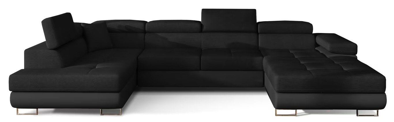 SOFÁ CAMA CON ARCÓN FORMA DE U REPOSACABEZAS RECLINABLES 345 CM X 202 CM RODRIGO NEGRO TELA/NEGRO POLIPIEL