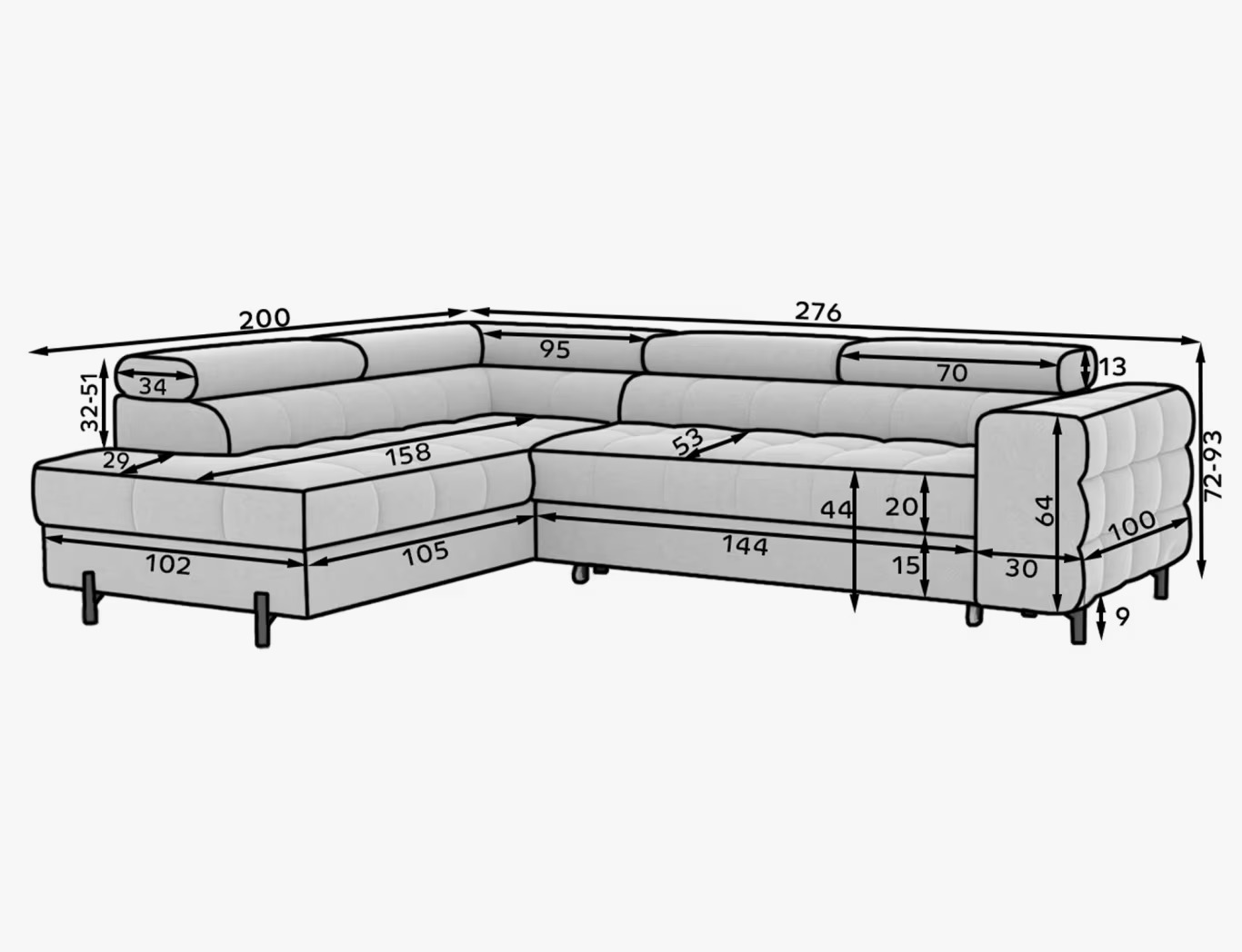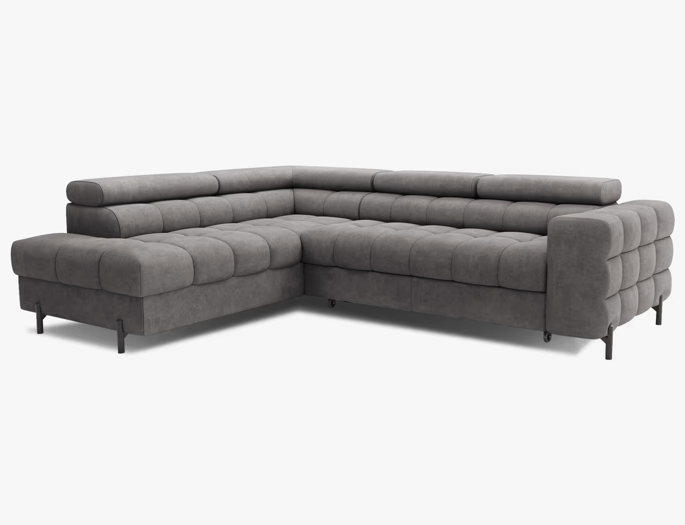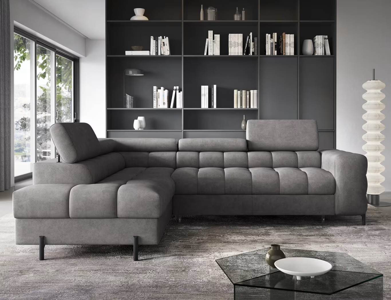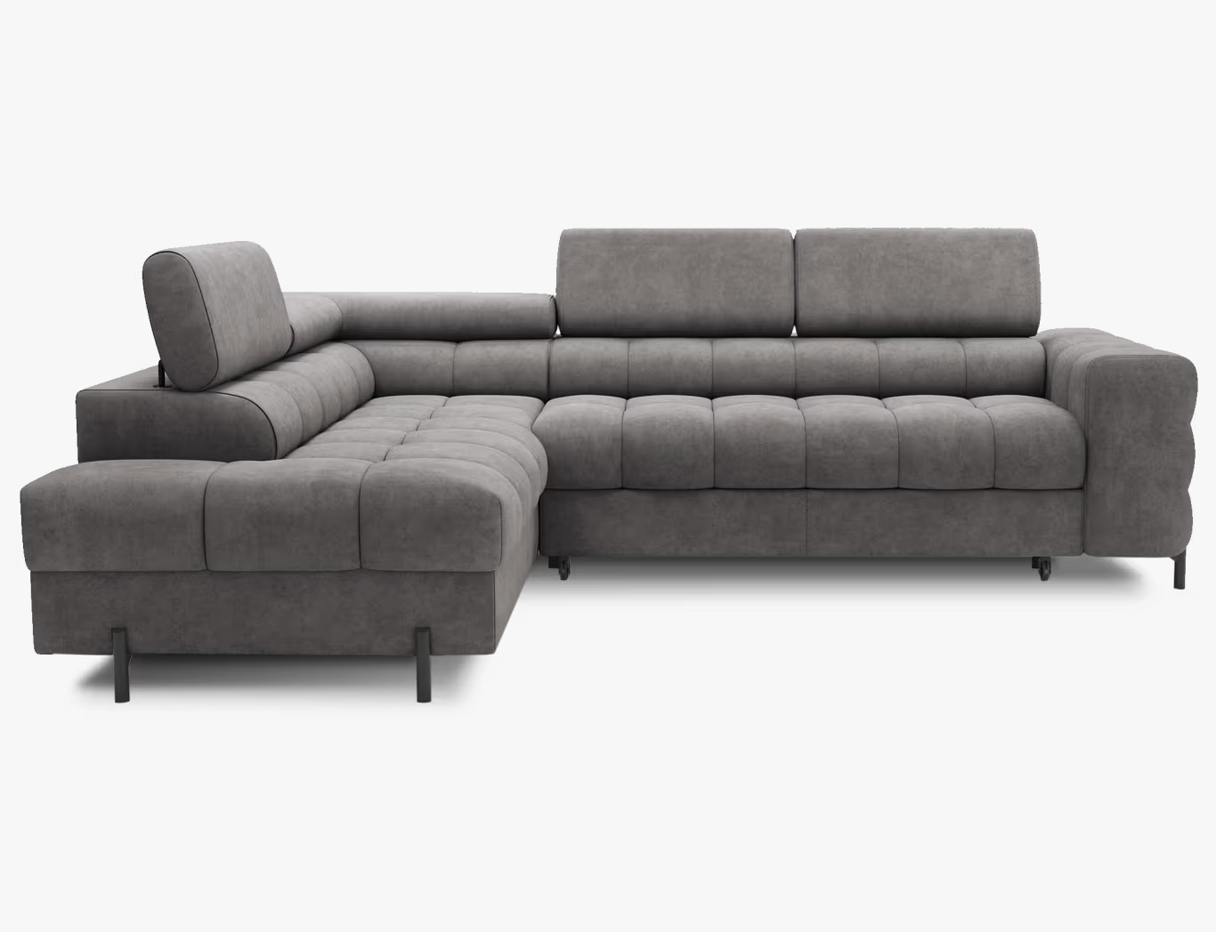 El sofá esquinero Feruche es un mueble moderno que combina funcionalidad y estética, adaptándose a la perfección a diversos estilos de decoración, desde loft hasta rústico. Con sus impresionantes 276 cm de ancho y 200 cm de profundidad, ofrece un amplio espacio para relajarse. Los reposacabezas ajustables y el respaldo tapizado garantizan comodidad durante el uso diario y el descanso.