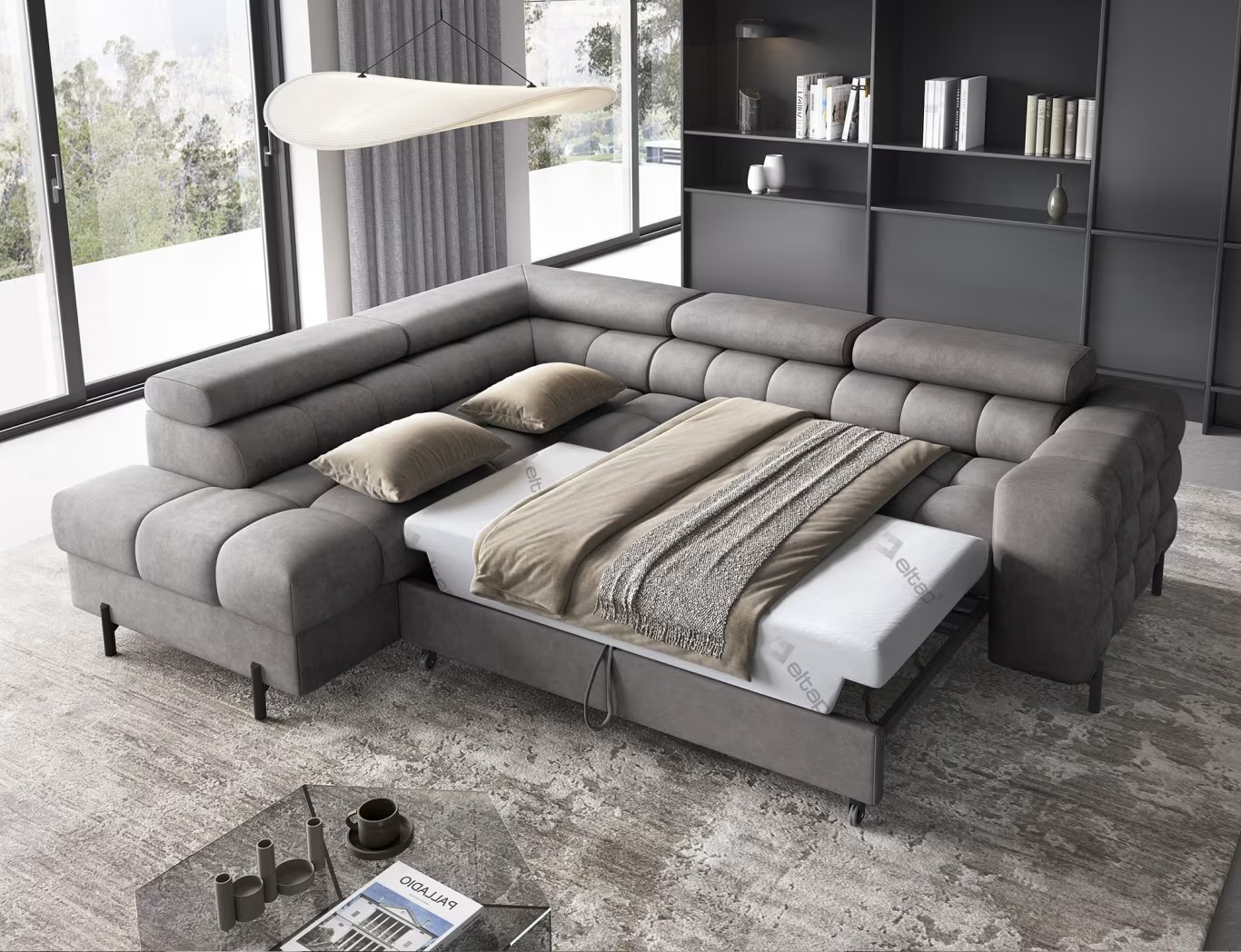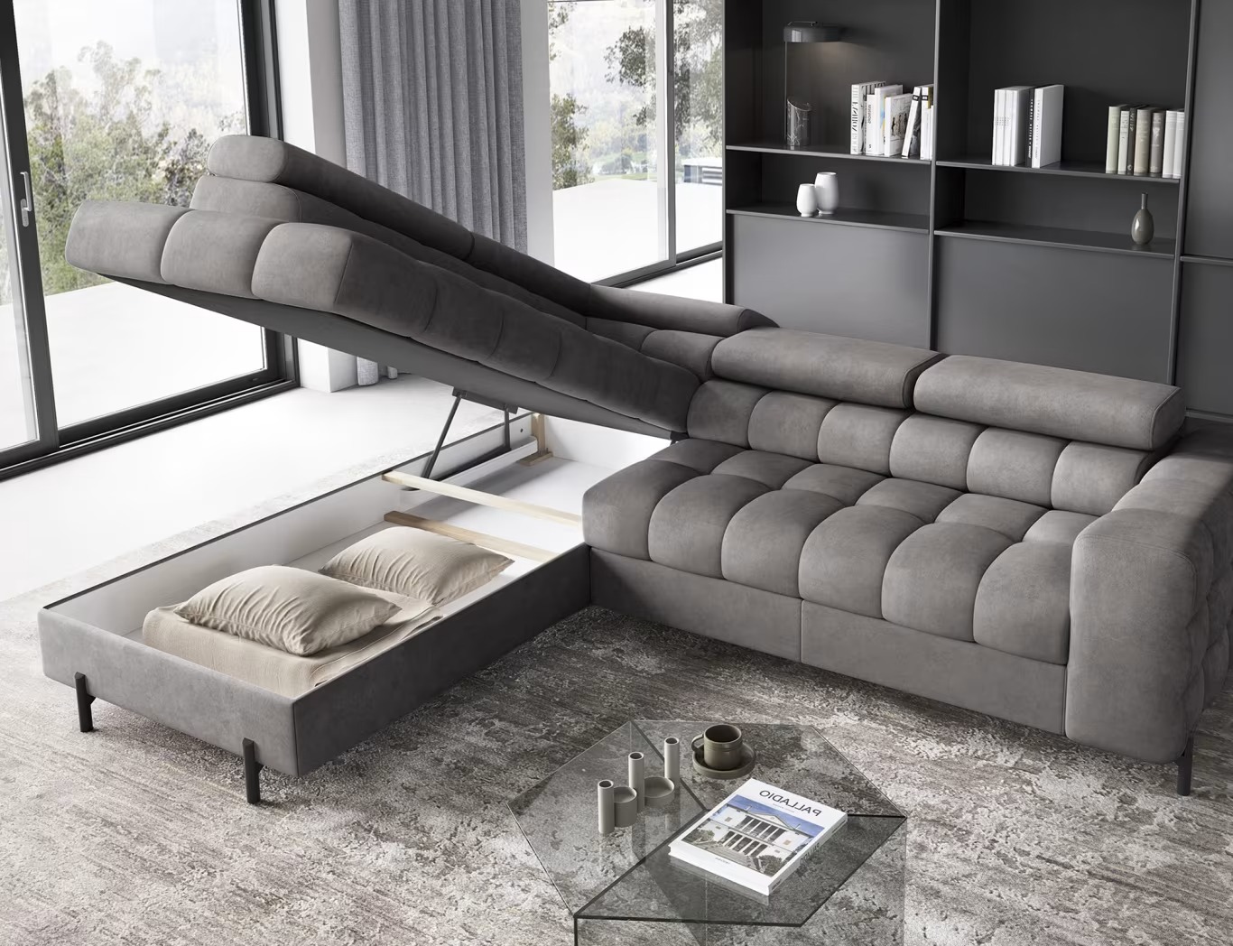 rinconera, sofá cama, cabezales reclinables, arcón de almasenaje, patas altas, sofá diseño moderno, sofá elegante, diseño moderno, sofás para salón, sofás salón comedor |