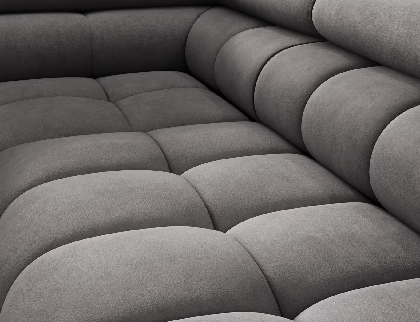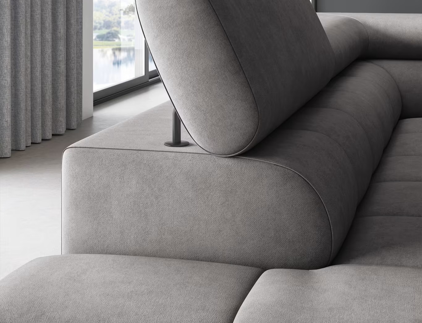Disponible en telas seleccionadas de la colección, el sofá esquinero Ferucce permite personalizar su color, creando un toque único en cualquier interior.