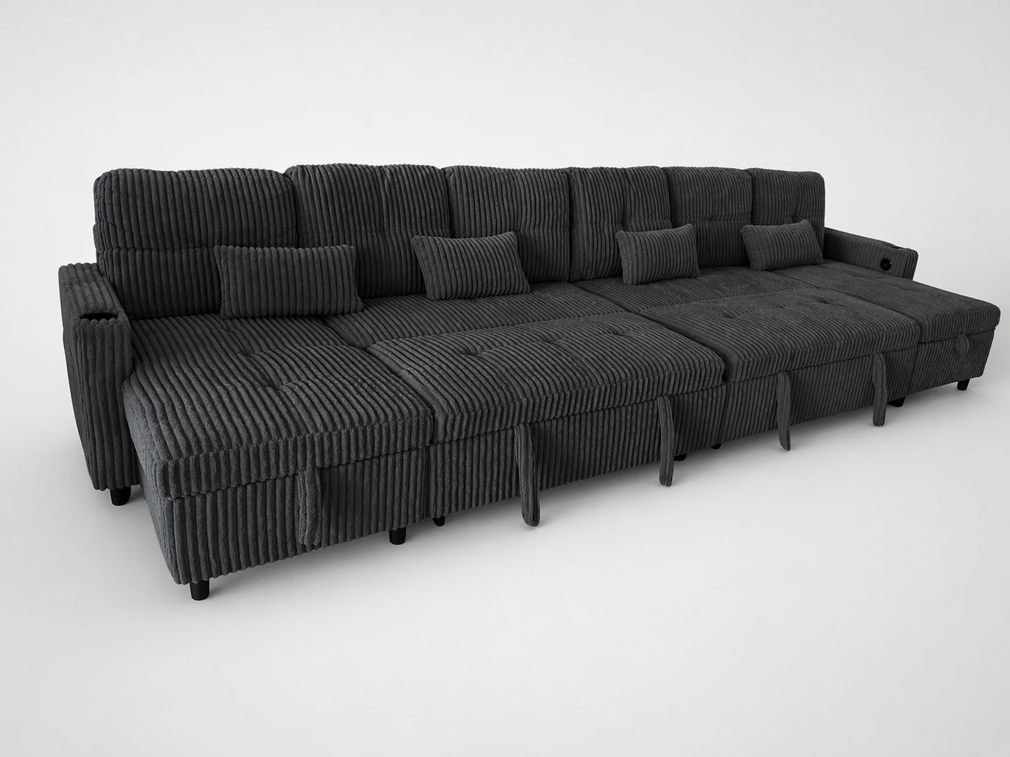 Sofá Cama en U de Tela de Pana 400x135 cm con 2 Arcones Portavasos Integrados USB Tipo-C - Costa U LUX GRIS OSCURO