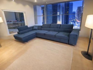 El sofá esquinero Anton XL convence por su funcionalidad y calidad de acabado. La estructura duradera y estable del mueble se combina con un cómodo relleno de asiento hecho de muelles ondulados resistentes al desgaste y espuma T30 extremadamente flexible y cómoda. Una ventaja adicional es el tapizado resistente a la abrasión y a la decoloración, una función adicional para dormir disponible en el sistema de plegado Dolphin y un espacioso contenedor para la ropa de cama colocado en la otomana de esquina. Las dimensiones de los muebles proporcionan un amplio espacio para el descanso durante el día. Cuando se despliega, el modelo Anton XL gana espacio para dormir, lo que garantiza un sueño confortable y saludable.
