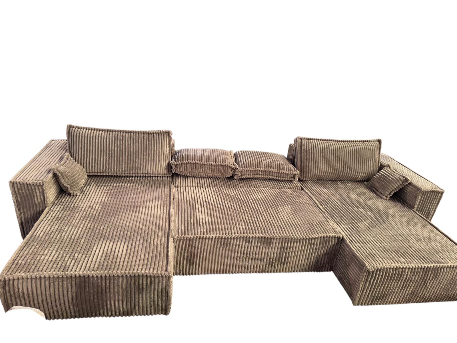 Sofá cama U - gris claro - tela de pana - 400x190 cm - AGATA U