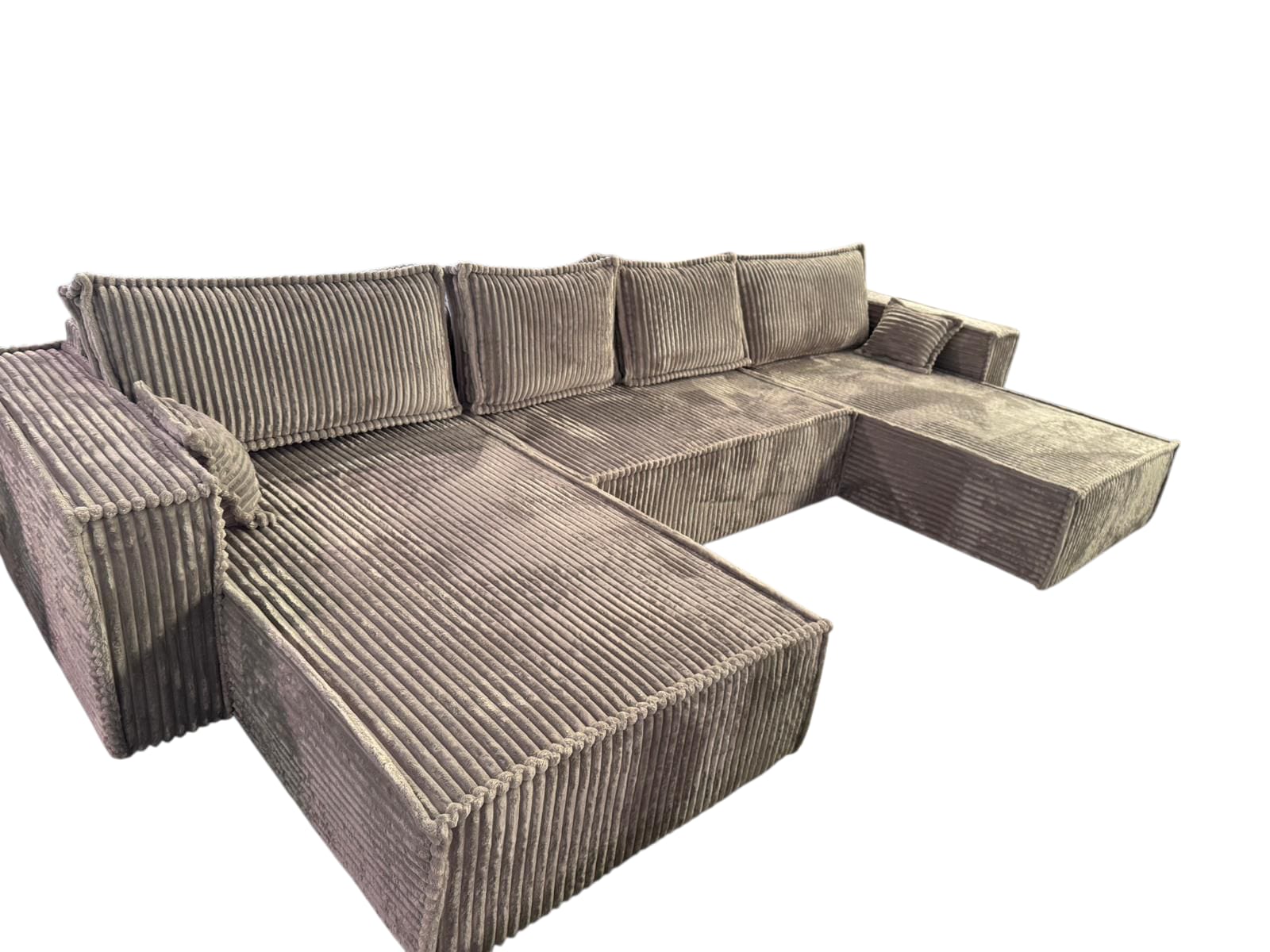 AGATA U es un sofá esquinero en forma de U excepcionalmente elegante, sofisticado e innovador, con unas medidas de 396 x 190 x 85 cm. Este mueble cuenta con un cómodo y suave asiento fabricado con muelles sinuosos y duraderos y espuma flexible T3040, resistente no solo a daños, sino también a deformaciones y arañazos de todo tipo. Su diseño es moderno y clásico. Nuestro sofá esquinero cuenta con una función de descanso con una superficie de 320 x 130 cm, además de un compartimento para guardar la ropa de cama. Entre sus características más destacadas se incluyen un amplio reposabrazos y amplios cojines. Al elegir nuestro sofá esquinero, que no solo es atractivo sino también funcional, encontrará todo lo necesario para disfrutar al máximo de la comodidad que le ofrecemos.