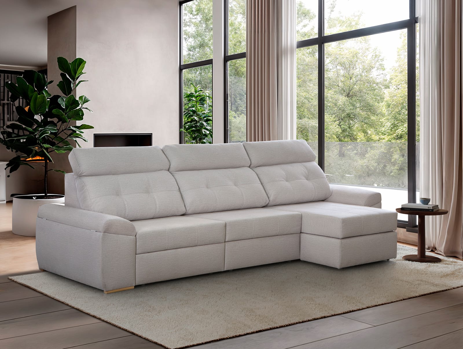 SOFÁ CHAISE LONGUE CON ASIENTOS DESLIZANTES Y BRAZO ARCÓN 294 CM X 155 CM ALBACETE GRIS CLARO