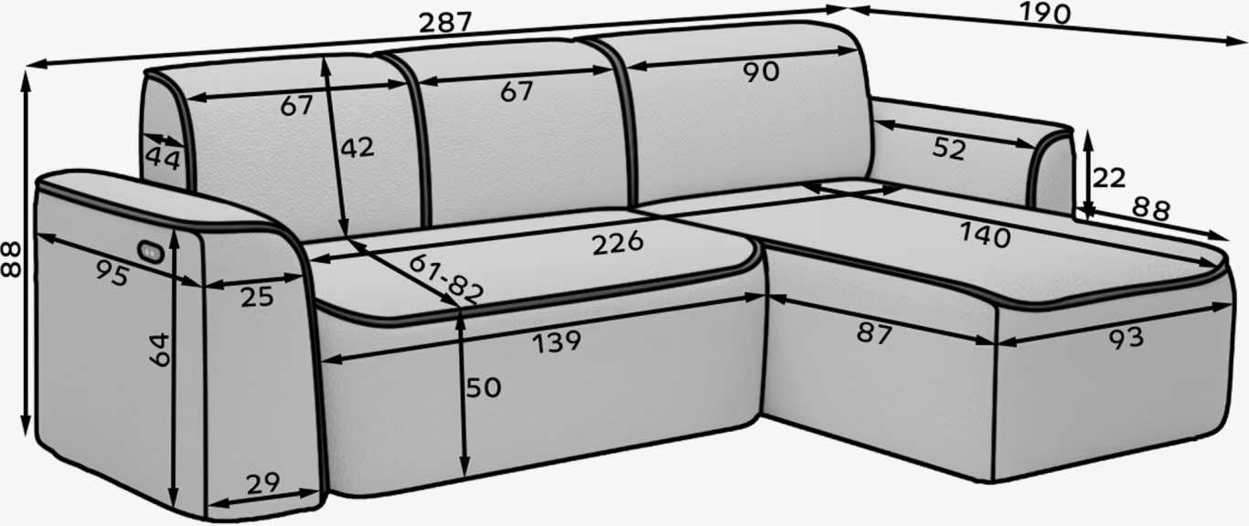 El sofá esquinero Ume es un elegante sofá esquinero en forma de L que convence por su diseño moderno y su acabado de alta calidad. El asiento del sofá esquinero está hecho de espuma HR de alta densidad HR Foam + T3030, que proporciona una zona de descanso cómoda y duradera. El respaldo del sofá esquinero está fabricado en espuma de densidad T2540 + T2315, lo que garantiza un soporte adecuado para la espalda y comodidad durante la relajación. El sofá esquinero Ume se caracteriza por unas impresionantes dimensiones de 287x190x88 cm. Gracias a los materiales de alta calidad y la construcción sólida, este sofá esquinero le brindará muchos años de uso cómodo y satisfacción. Además, el sofá esquinero Ume está equipado con un asiento retráctil electrónicamente, lo que hace que el uso de este mueble sea aún más cómodo y funcional. Con el mecanismo eléctrico, la posición del asiento se puede ajustar fácilmente según las preferencias individuales, lo que permite posiciones de asiento personalizadas adaptadas a las necesidades del usuario. Esta innovadora incorporación hace que el sofá esquinero Ume sea una excelente opción para las personas que valoran la comodidad y las soluciones modernas en su interior.