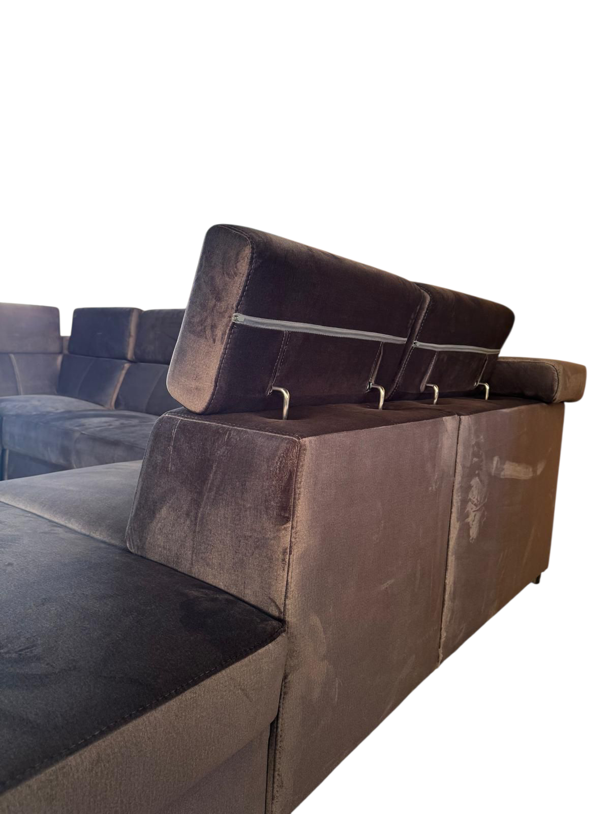 Sofá en forma de U - Angela. Cama extraíble y reposacabezas reclinables. 7 plazas, gris, 335x260