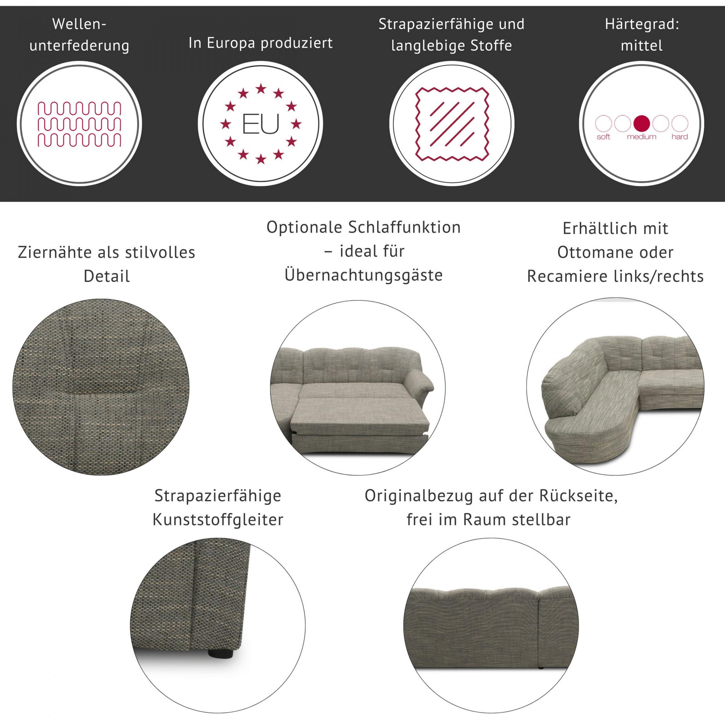 Sofá esquinero Papenburg A/P/A: 242/190/84 cm en forma de L