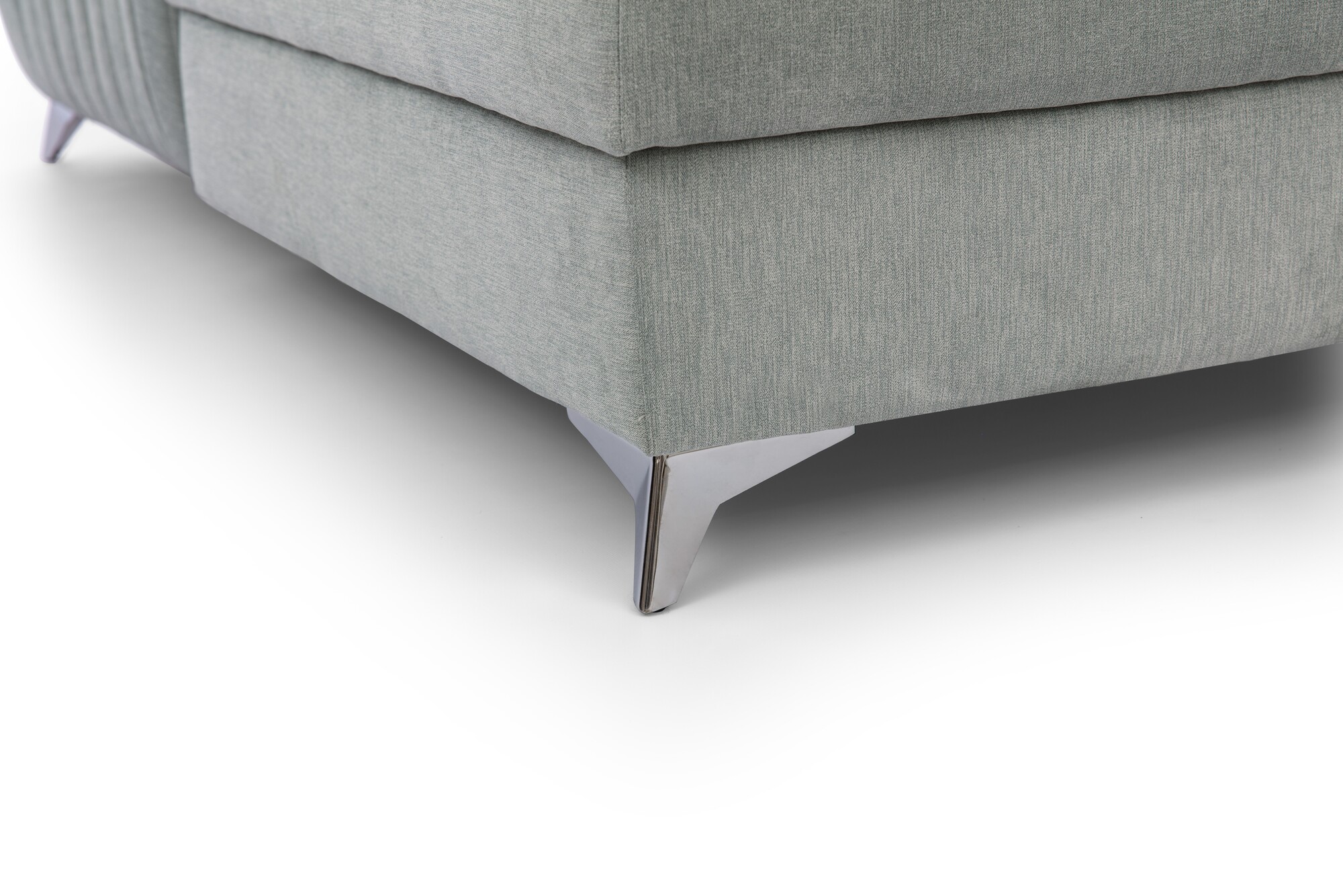 El sofá esquinero Lacante realza cualquier espacio moderno gracias a su forma original y sus patas de acero cromado de 9 cm de alto. Lacante también ofrece una acogedora opción de tapizado y, como fabricantes de muebles tapizados, utilizamos exclusivamente telas de la más alta calidad. El asiento está relleno con una combinación de espuma HR y T30, lo que garantiza un confort excepcional.