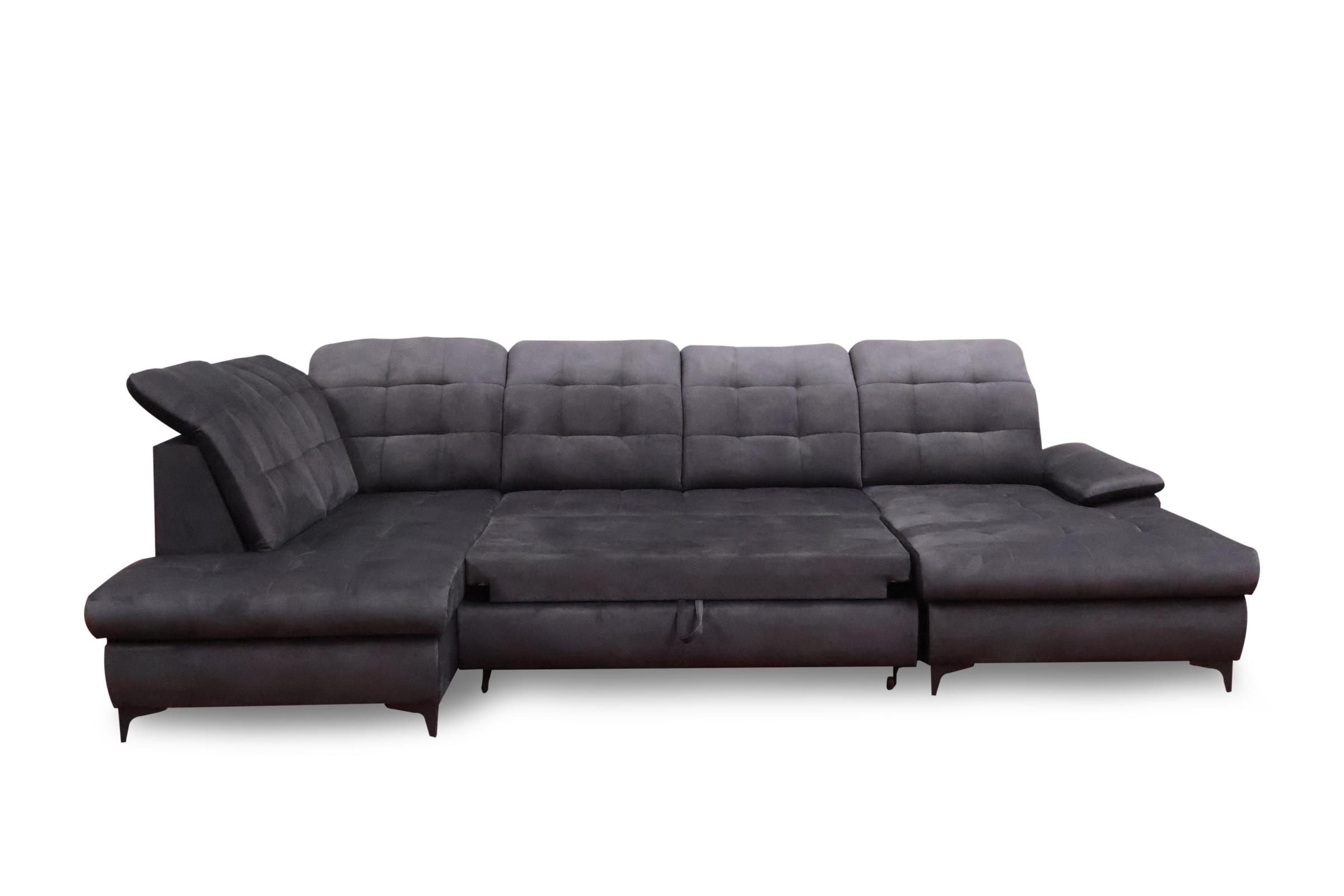 SOFÁ GRANDE CON CAMA Y DOS ARCONES I FORMA DE U I REPOSACABEZAS RECLINABLES I PATAS ALTAS 330 CM X 212 CM
