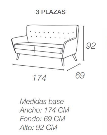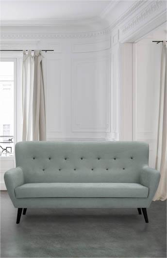 SOFÁ LINEAL 3 PLAZAS DE DISEÑO CON BOTONES 174 CM NÓRDICOS VERDE AZULADO