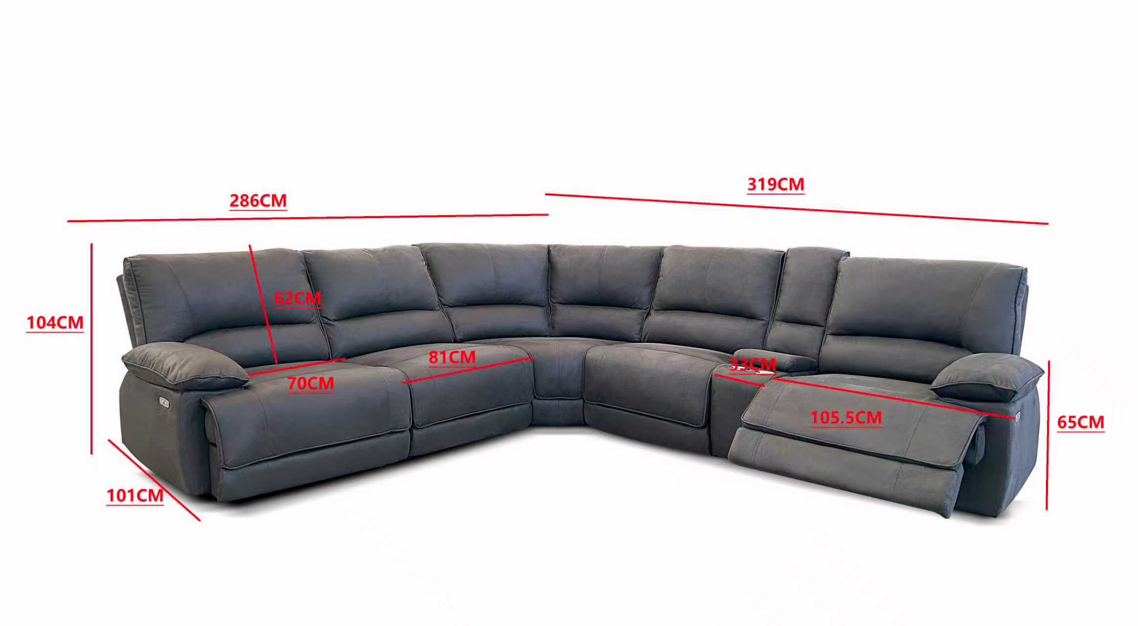 Actualice su sala de estar con el sillón esquinero modular de 5 plazas, que combina comodidad de lujo y funcionalidad inteligente. Tapizado en suave Global, este conjunto esquinero cuenta con dos sillones reclinables eléctricos para una relajación suave y automática con solo pulsar un botón. Fabricado con resistentes asientos de resortes internos, proporciona un soporte duradero para el uso diario. Además, los puertos de carga USB integrados mantienen sus dispositivos cargados sin moverse del asiento. Perfecto para relajarse en familia o para recibir visitas, el sillón esquinero reclinable ofrece un estilo moderno, comodidad superior y practicidad para el día a día. 319 x 286 cm