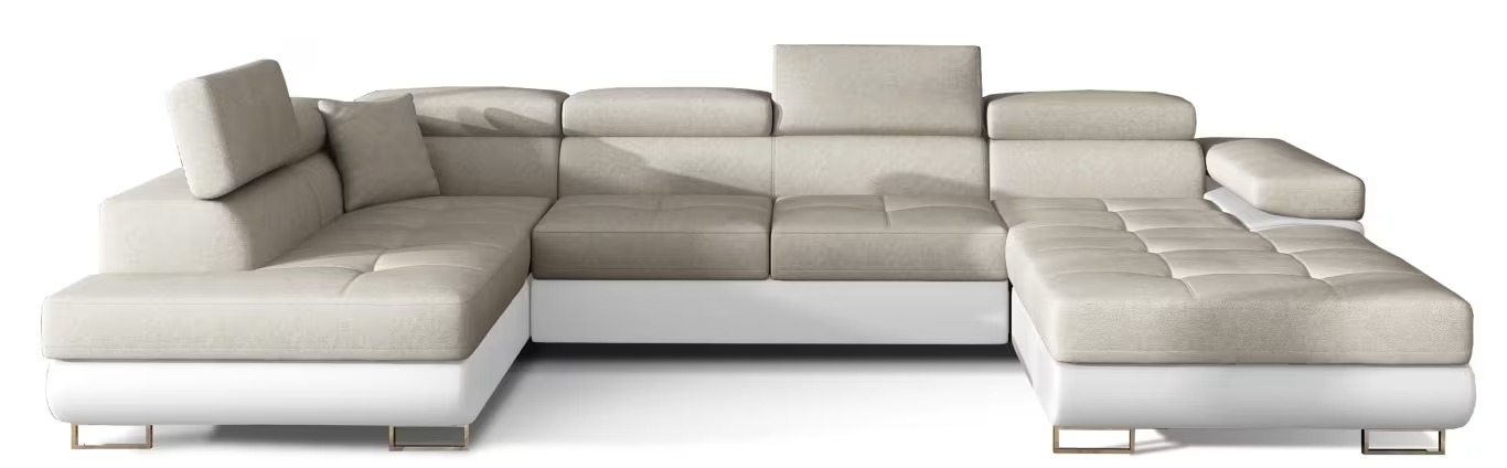 Sofás cama+arcon - beige/tela - blanco/polipiel - 345x205 - RODRIGO