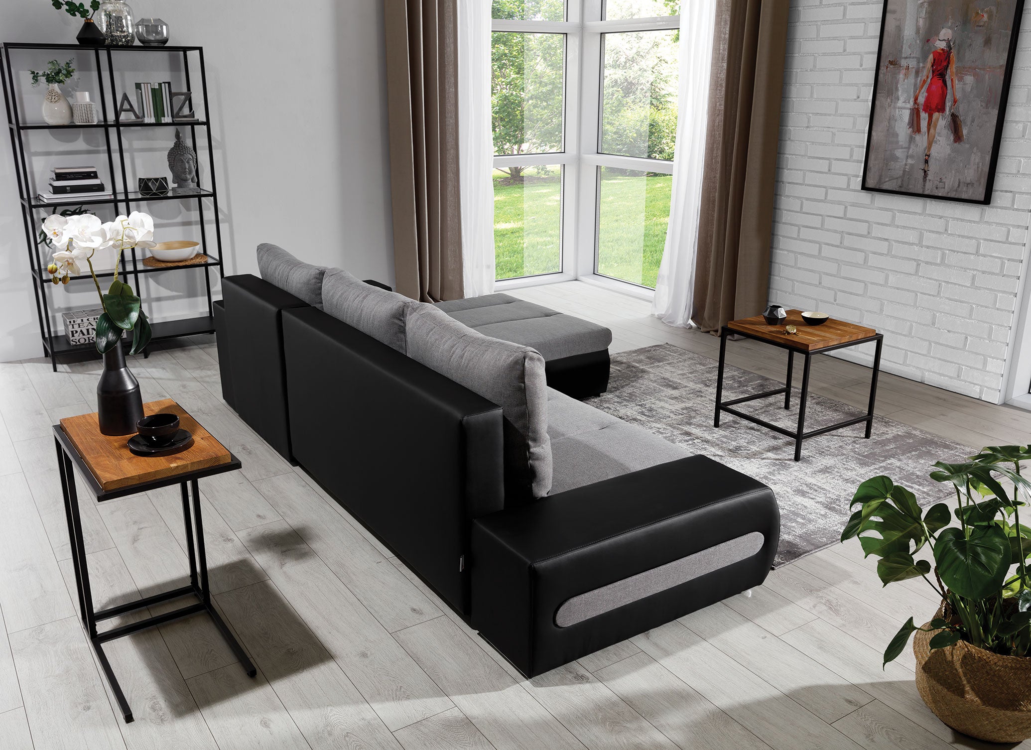 Construcción clásica, forma sencilla, diseño interesante y máximo confort: en pocas palabras se puede describir el sofá esquinero Ottavio. Este mueble en forma de L con unas dimensiones de 275x180x80 cm cuenta con un asiento mullido fabricado con duraderos muelles en zigzag y espuma flexible T3030, lo que hace que el sofá esquinero sea muy cómodo y flexible, a la vez que proporciona un excelente apoyo al cuerpo durante el descanso. Además, nuestros muebles están equipados con una función para dormir. Cuando se despliega, se transforma en una cama con unas dimensiones de 195 x 135 cm. Esto se consigue mediante un mecanismo de plegado sencillo e intuitivo, que consiste en sacar la parte inferior y girar el respaldo. Algunas características características del sofá esquinero Ottavio son un espacioso compartimento para guardar la ropa de cama, un respaldo tapizado y elegantes costuras en los asientos y respaldos. Ottavio combina funcionalidad, comodidad y el estilo adecuado. Si te inspira un estilo minimalista pero elegante, te invitamos a elegir el sofá esquinero Ottavio