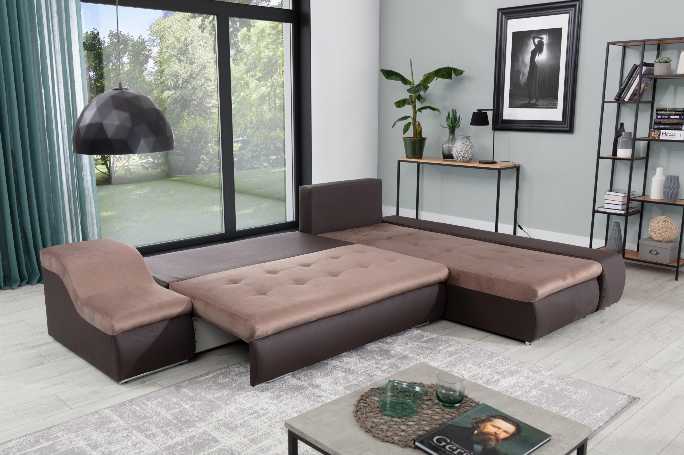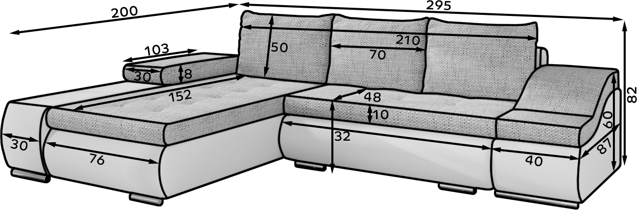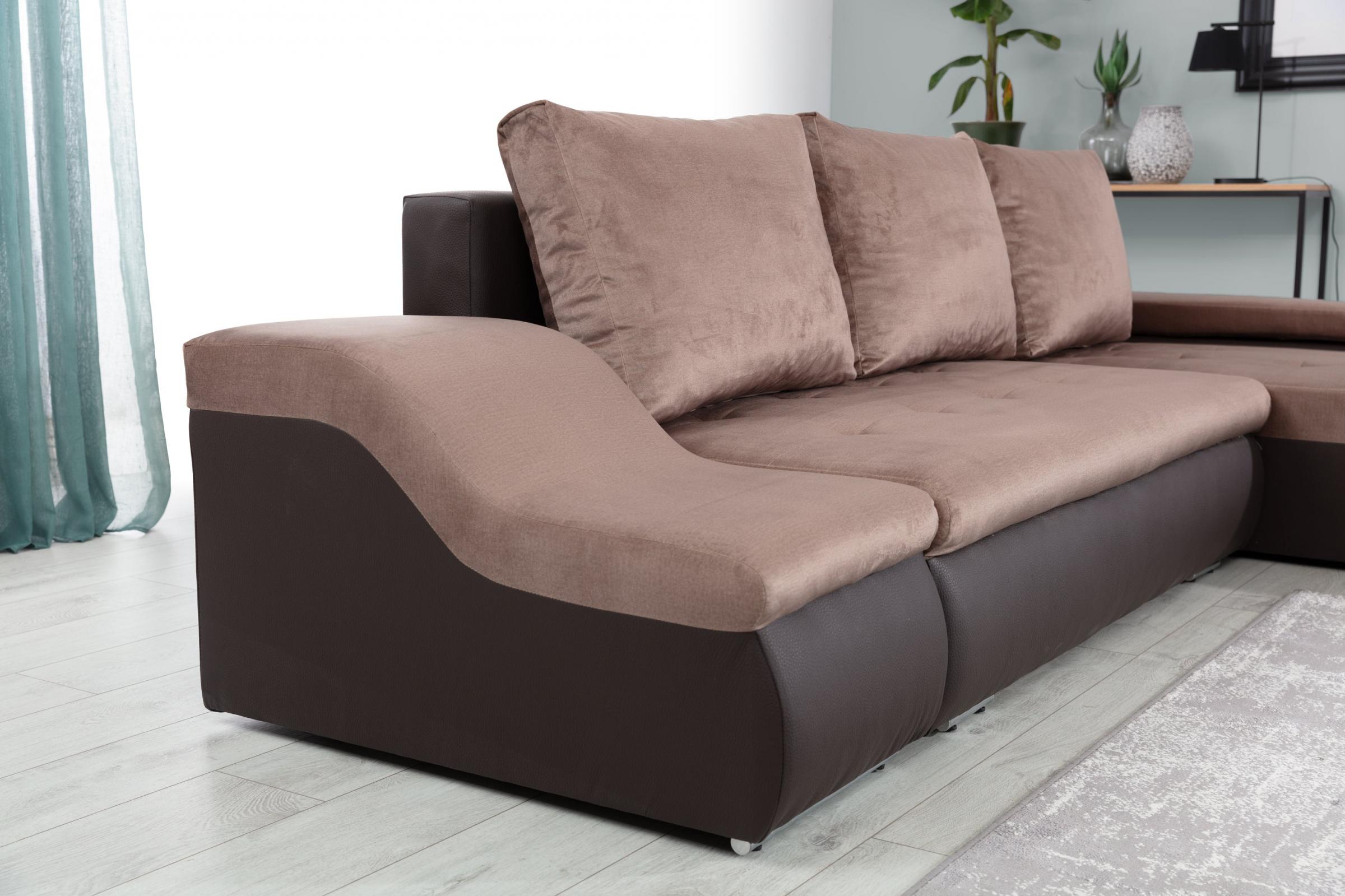 Gracias a la función desplegable adicional, el usuario puede utilizar el mueble como lugar para dormir. El fondo retráctil del rincón y el respaldo reversible le permiten adaptar rápidamente el mueble a sus necesidades actuales. Después de desplegarlo, obtendrá una cómoda cama y espacio para guardar la ropa de cama. La comodidad del descanso se ve influenciada no sólo por la sólida construcción de los muebles y los materiales utilizados, sino también por el relleno del asiento compuesto por una combinación de muelles ondulados y espuma T30.